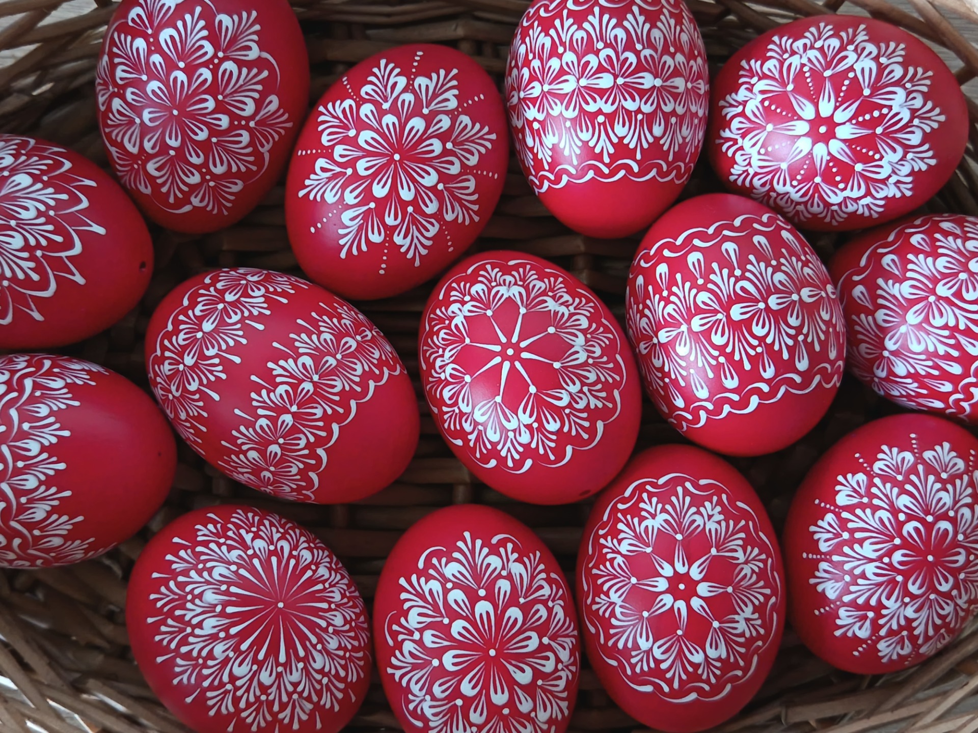 Děrované kraslice (kachní) malované voskem.